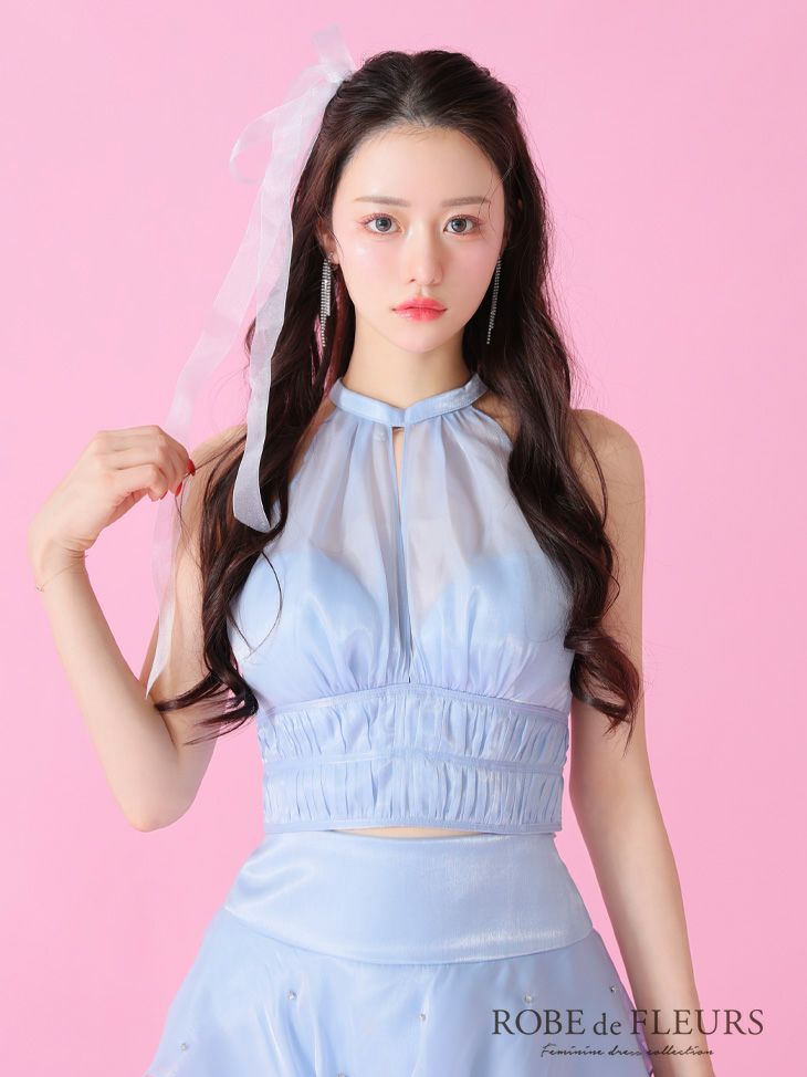 他の画像を見る シフォン生地でふんわり柔らかい女性に♡ [ROBEdeFLEURS/ローブドフルール] 高級 ホルターネック バストカット ジップ シャーリング シフォン セットアップ 谷間魅せ タイトミニドレス ¥ 30,580 税込 お気に入りに追加