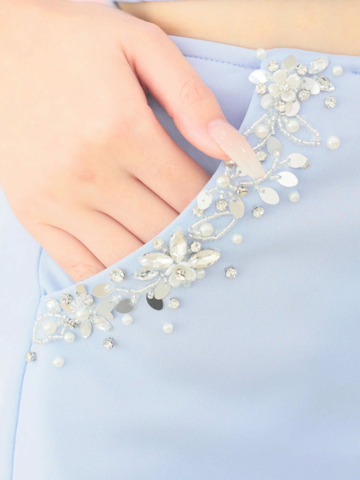 他の画像を見る 煌びやかな胸元に視線釘付け☆ [Angel-R/エンジェルアール] 高級 ホルターネック クロスビジュー パール セットアップ バストカット 谷間魅せ フレアミニドレス ¥ 32,780 税込 お気に入りに追加