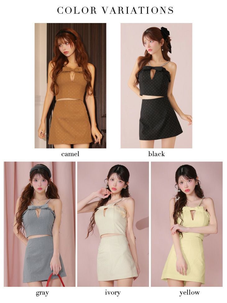 他の画像を見る マイクロミニ丈で美脚効果抜群♡ [Angel-R/エンジェルアール] 高級 ブランド タイトミニドレス セットアップ キャミソール 谷間 スパンコール 刺繍 リボン バストシースルー ¥ 32,780 税込 お気に入りに追加