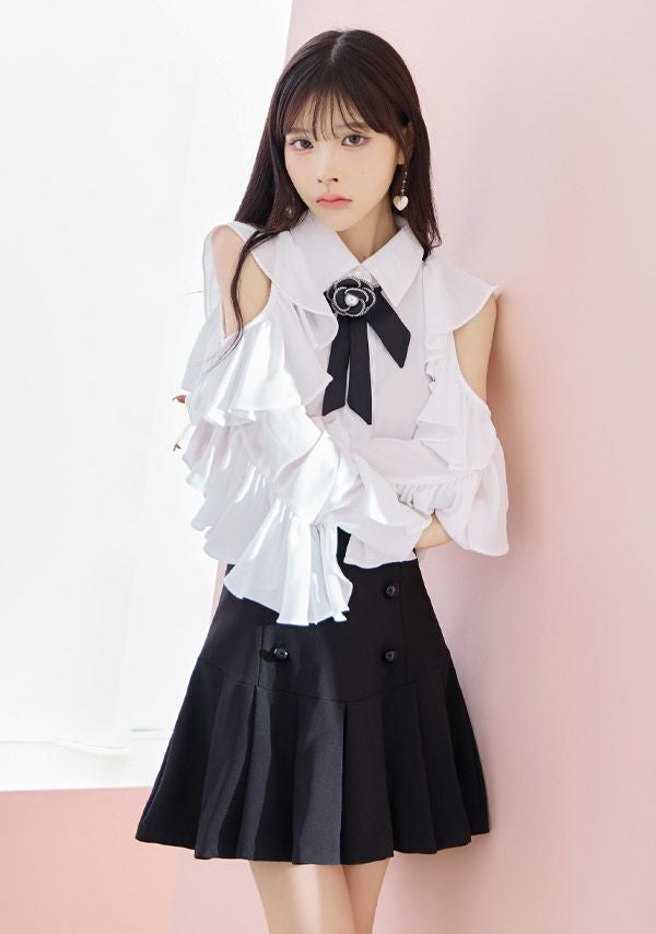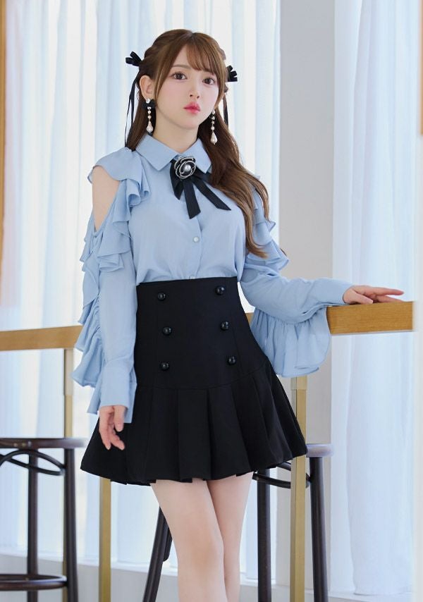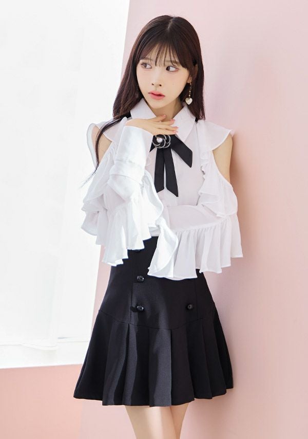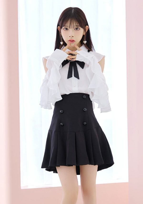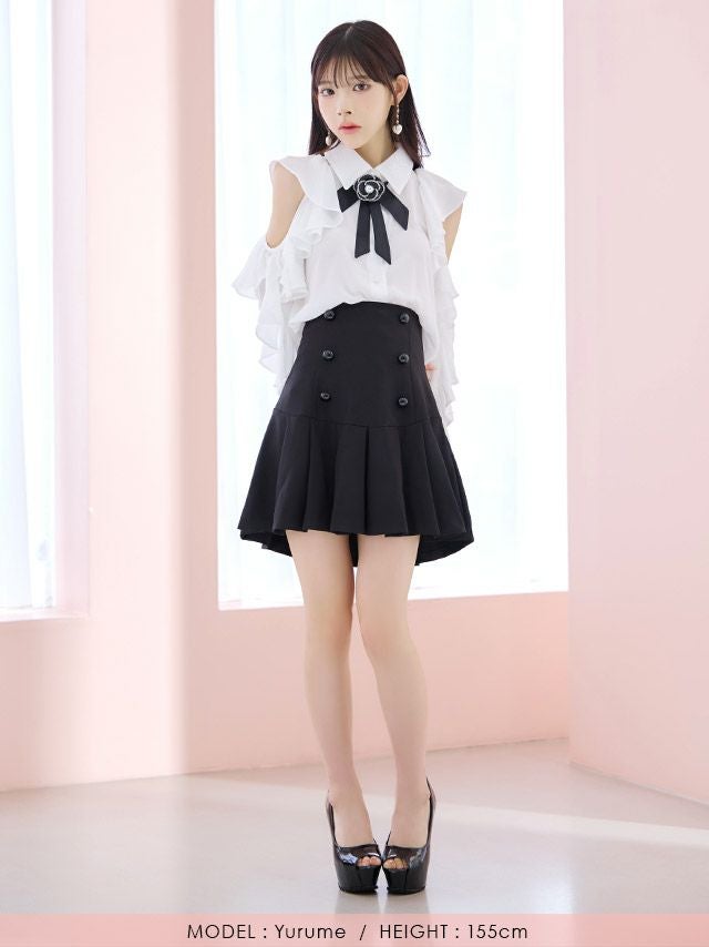 気分でベアトップとしても着られる♡ 予約商品【4月上旬入荷予定】[Angel-R/エンジェルアール] 高級 ブランド フレアミニドレス 谷間 セットアップ ベア キャミソール 2way ジップ ハートカット フリル ワンカラー