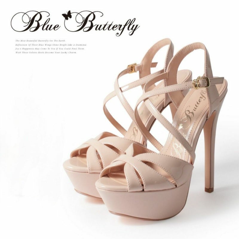 4. SALE [BlueButterfly/ブルーバタフライ] 高級アンクルストラッププラットフォームハイヒールワンカラーパンプス (ピンクベージュ) (16cmヒール)