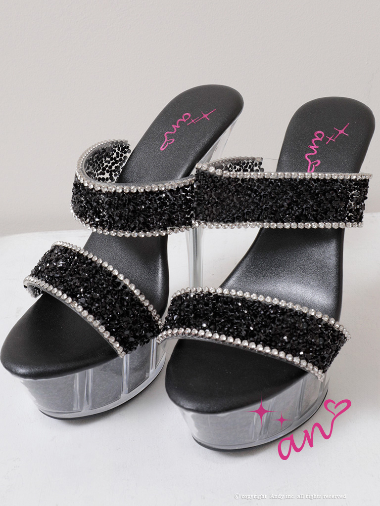 3. [an/アン] 高級 ビジュー オープントゥ キラキラ サンダル