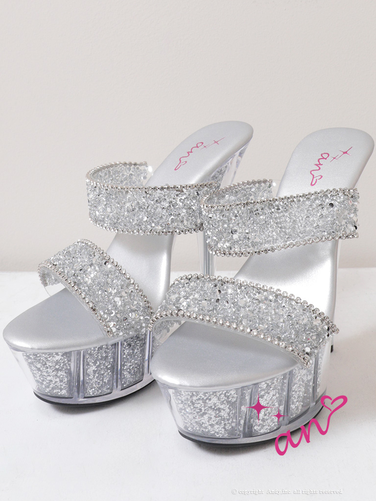 4. [an/アン] 高級 ビジュー オープントゥ キラキラ サンダル