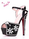 14.5cmヒール☆フラワービジューが可愛い☆ [an/アン] 高級ラメフラワーパールオープントゥキラキラハイヒール