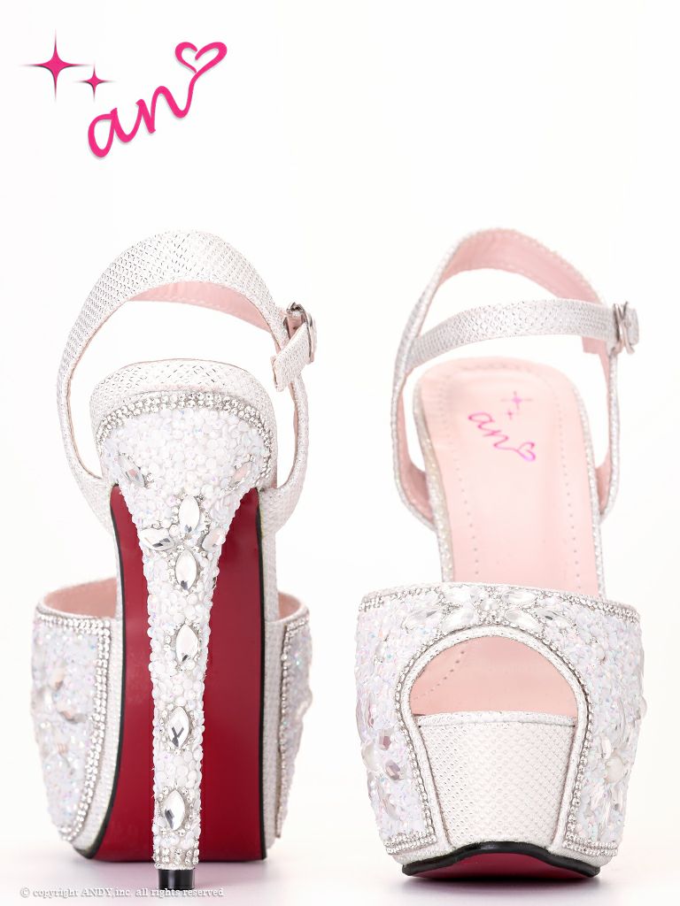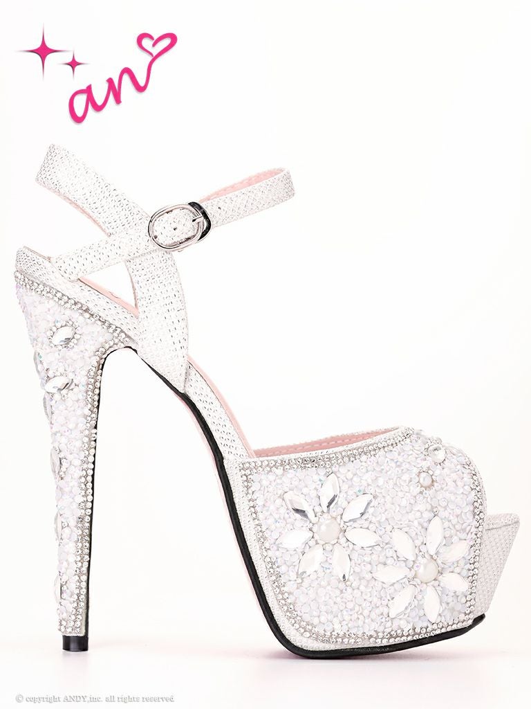 キャバドレス Andy アンディ 高級ラメフラワーパールオープントゥキラキラハイヒール