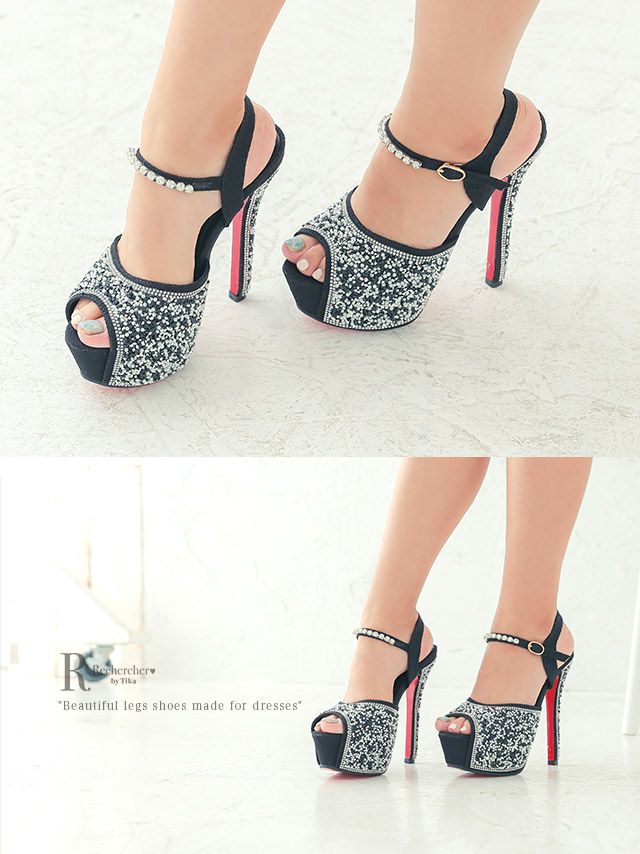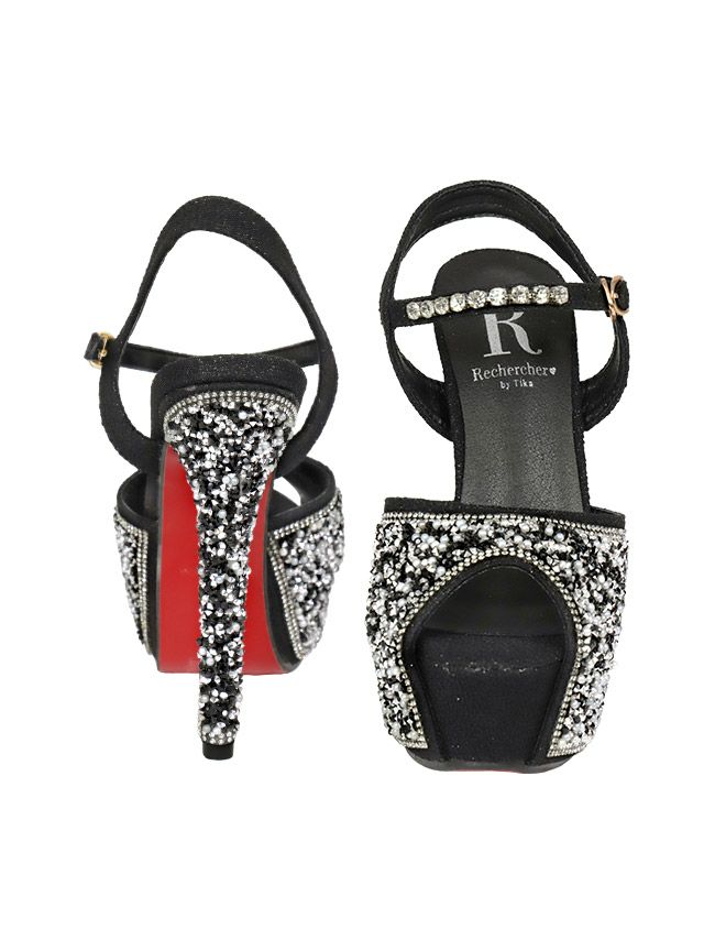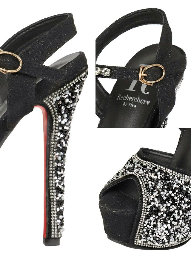 サンダル 靴 パンプス キャバサンダル キャバクラ 黒 美脚 Tika ティカ ゴージャスビジューハイヒールストラップサンダル