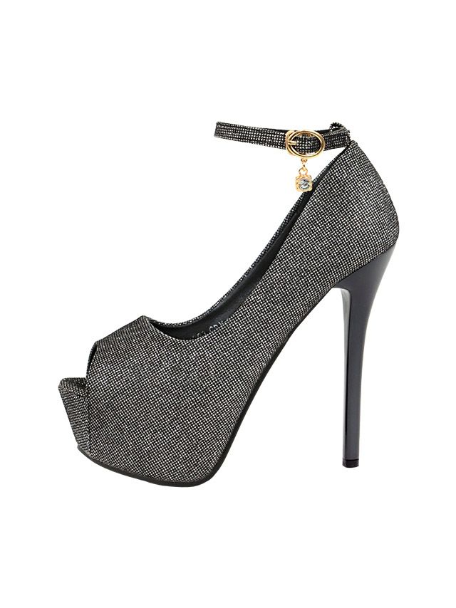 アンクルチャーム付きグリッターハイヒールオープントゥパンプス
