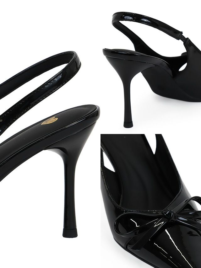 4. バックストラップ付きリボンポインテッドトゥパンプス (ブラック) (8cmヒール) [Retica/レティカ]
