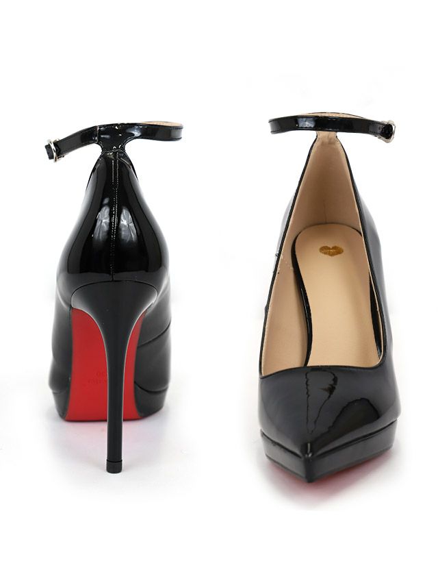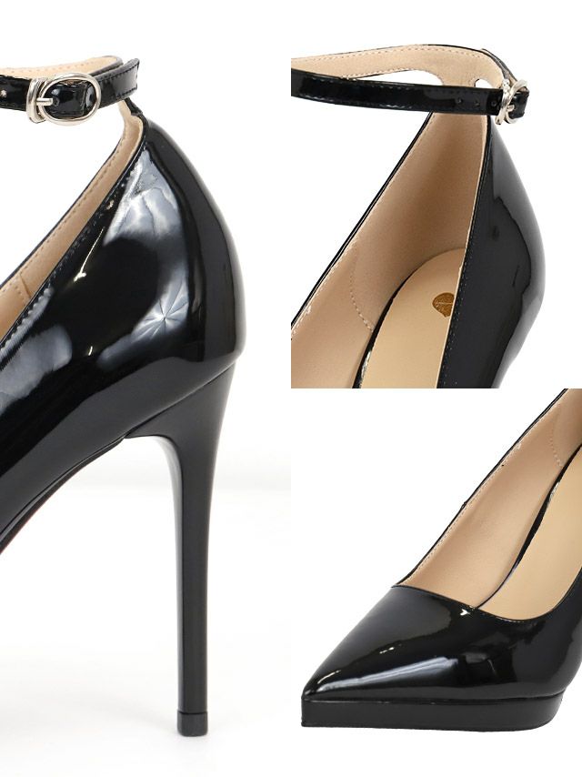 3. [SALE] エナメル アンクルストラップ シンプル パンプス (ブラック) (11cmヒール)