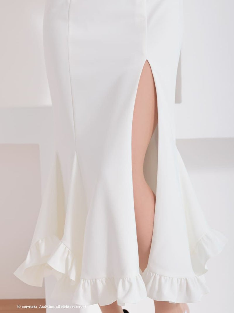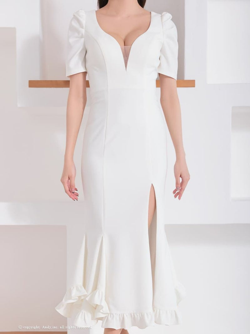 ワンカラーの上品なデザイン★ [Andy/アンディ] 高級 半袖 バストシースルー スリット フリル 谷間魅せ マーメイドロングドレス