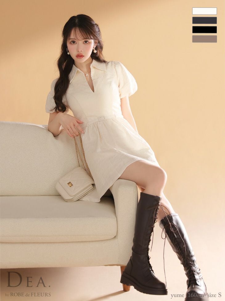 他の画像を見る 襟付きで上品な印象に♡ [DEA.byROBEdeFLEURS/ディアバイローブドフルール] 高級 ブランド Aラインミニドレス 谷間 半袖 ウエストベルト 襟付き ワンカラー ワッフル ¥ 27,280 税込 お気に入りに追加