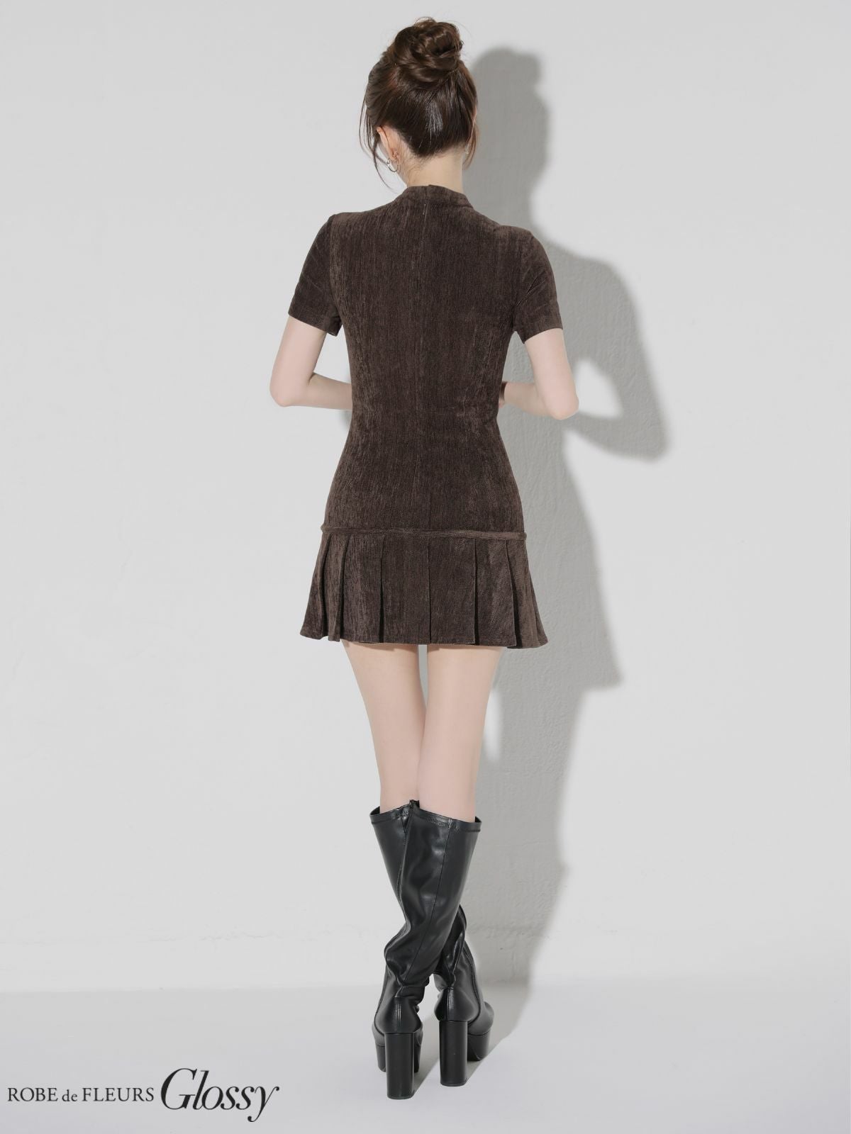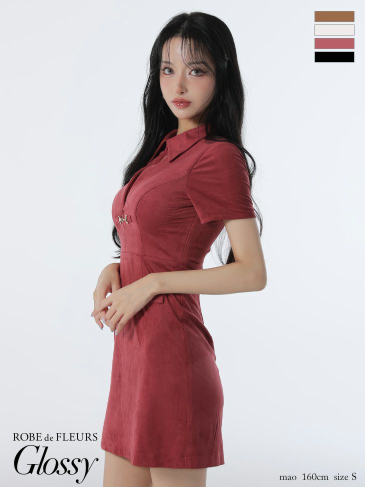他の画像を見る ボディラインを美しく演出♡ [ROBEdeFLEURSGlossy/ローブドフルールグロッシー] 高級 ブランド タイトミニドレス 半袖 谷間 襟付き スエード ¥ 27,280 税込 お気に入りに追加