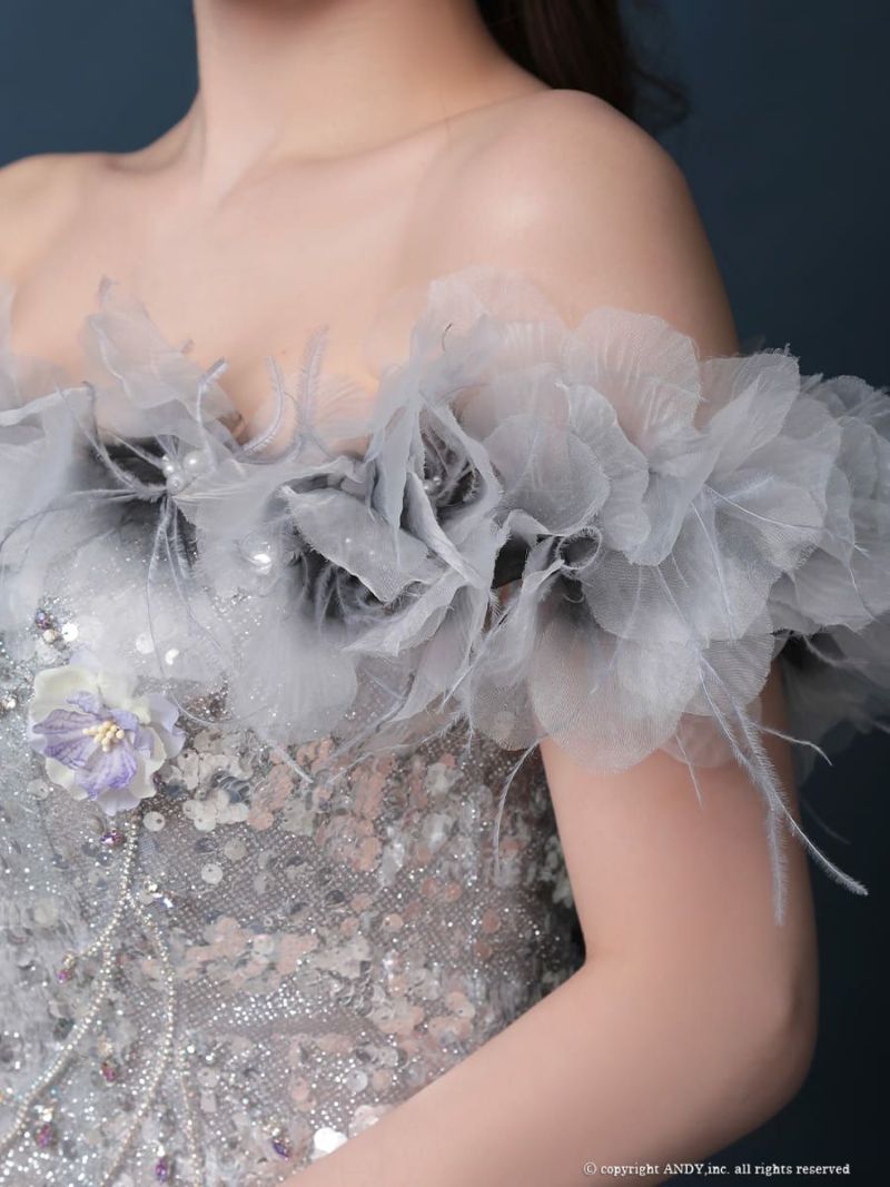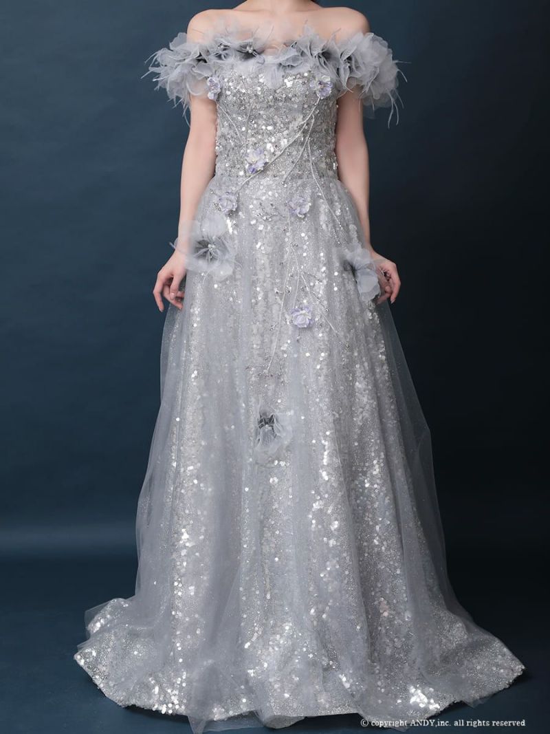 4. [couture an/クチュールアン] 高級 バースデー オフショルダー 半袖 フラワー ビジュー ラメスパンコール Aラインロングドレス