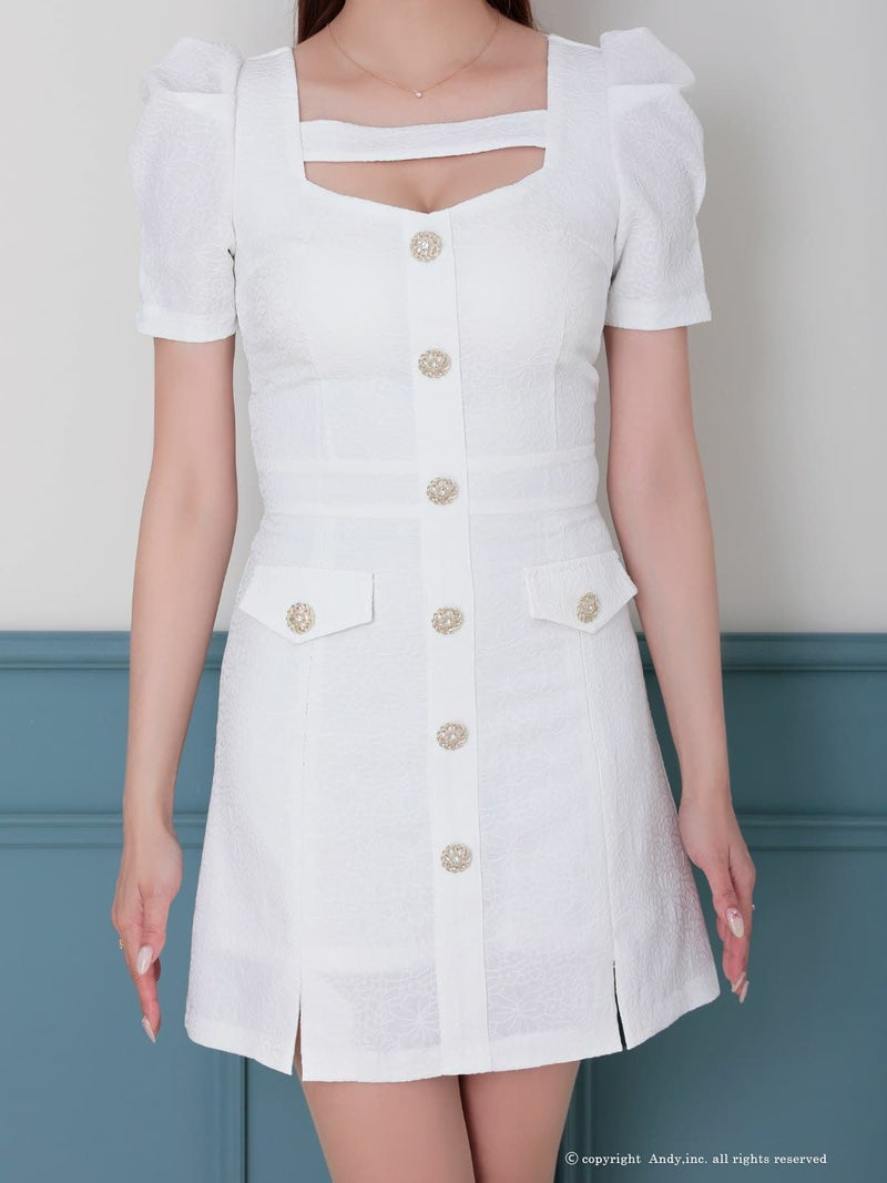 キャバドレス Andy アンディ 高級 半袖 パフスリーブ ワンカラー ボタン シンプル フレア ミニドレス