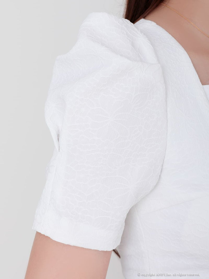シンプルで洗練された女性らしさ☆ [Andy/アンディ] 高級 半袖 パフスリーブ ワンカラー ボタン シンプル フレア ミニドレス