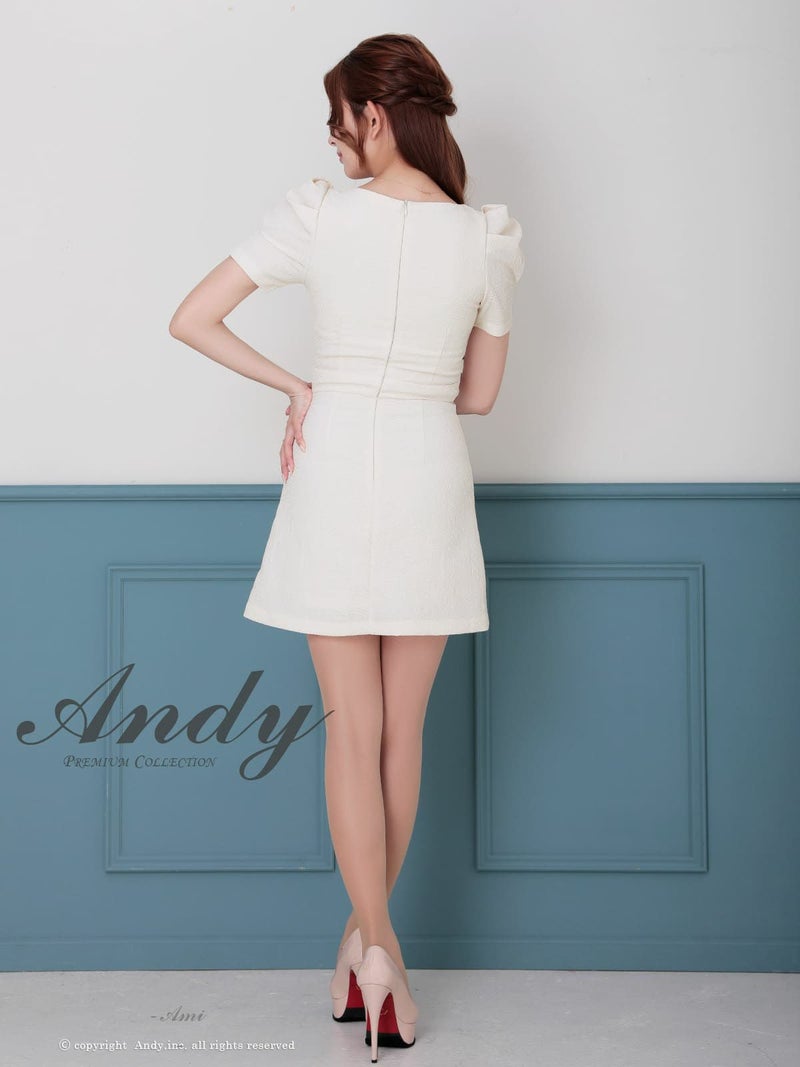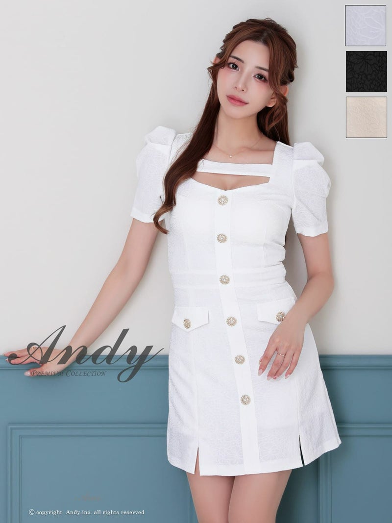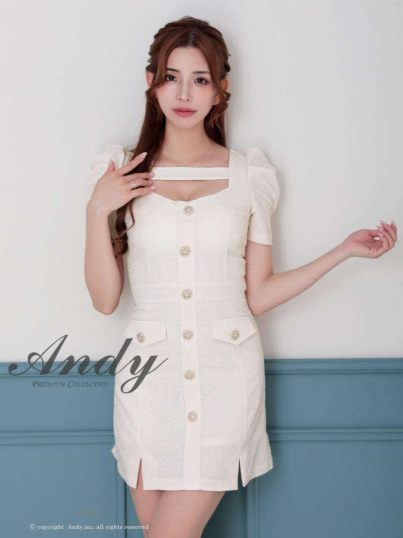キャバドレス Andy アンディ 高級 半袖 パフスリーブ ワンカラー ボタン シンプル フレア ミニドレス