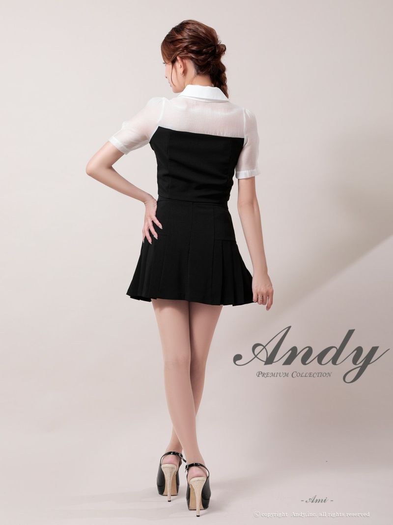 シースルーで透明感をプラス☆ [Andy/アンディ] 高級 ワンピース Aライン ミニドレス 谷間 セットアップ シンプル 上品 半袖 襟付き ジップ 同伴