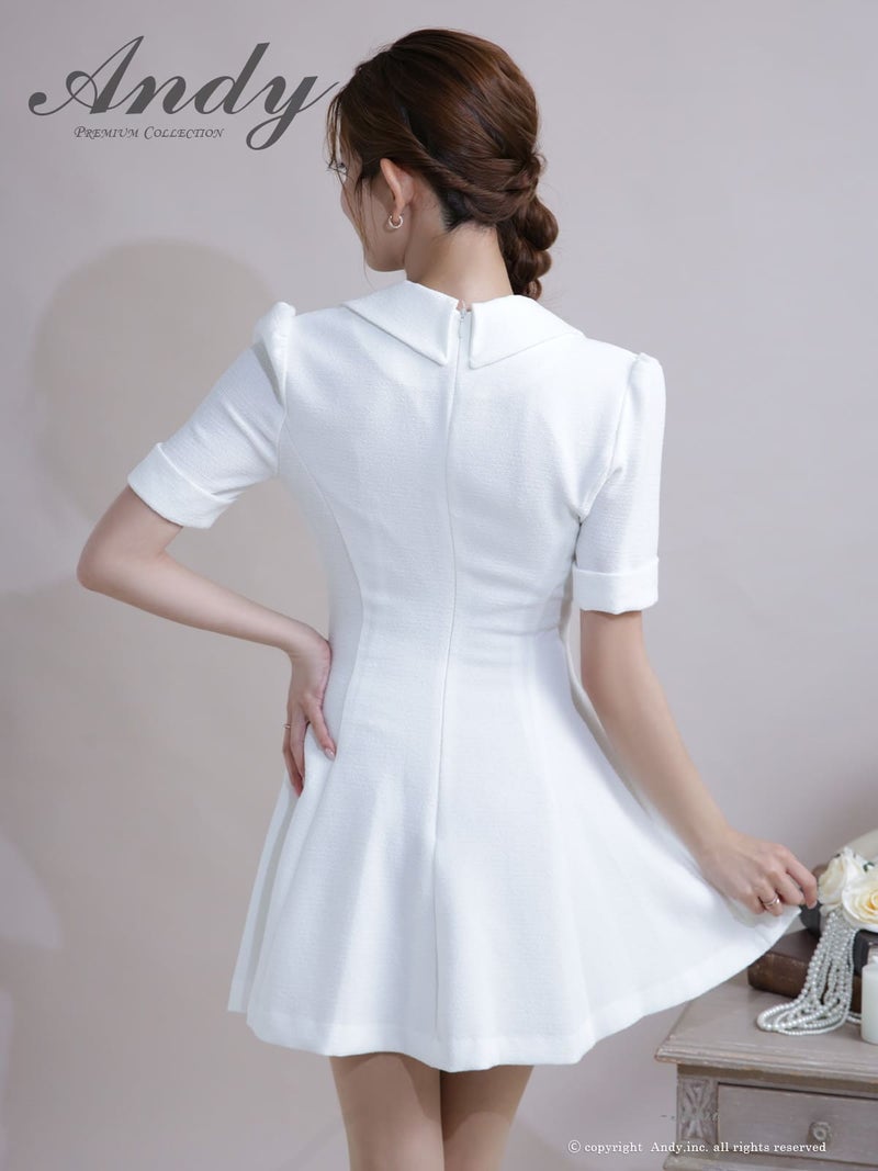 4. [Andy/アンディ] 高級 半袖 フレアミニドレス 襟付き ワンカラー バストカット