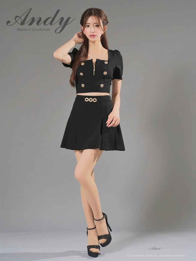 3. [Andy/アンディ] 高級 ワンピース Aラインミニドレス セットアップ 谷間 半袖 ジップ ボタン