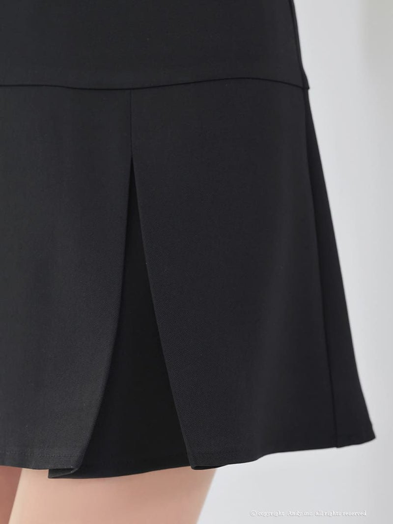 フレアの入ったスカートがガーリーな印象もプラス☆ [Andy/アンディ] 高級 半袖 ワンカラー スクエアネック ジップデザイン ボタン ゴールドチェーン フレア ミニドレス