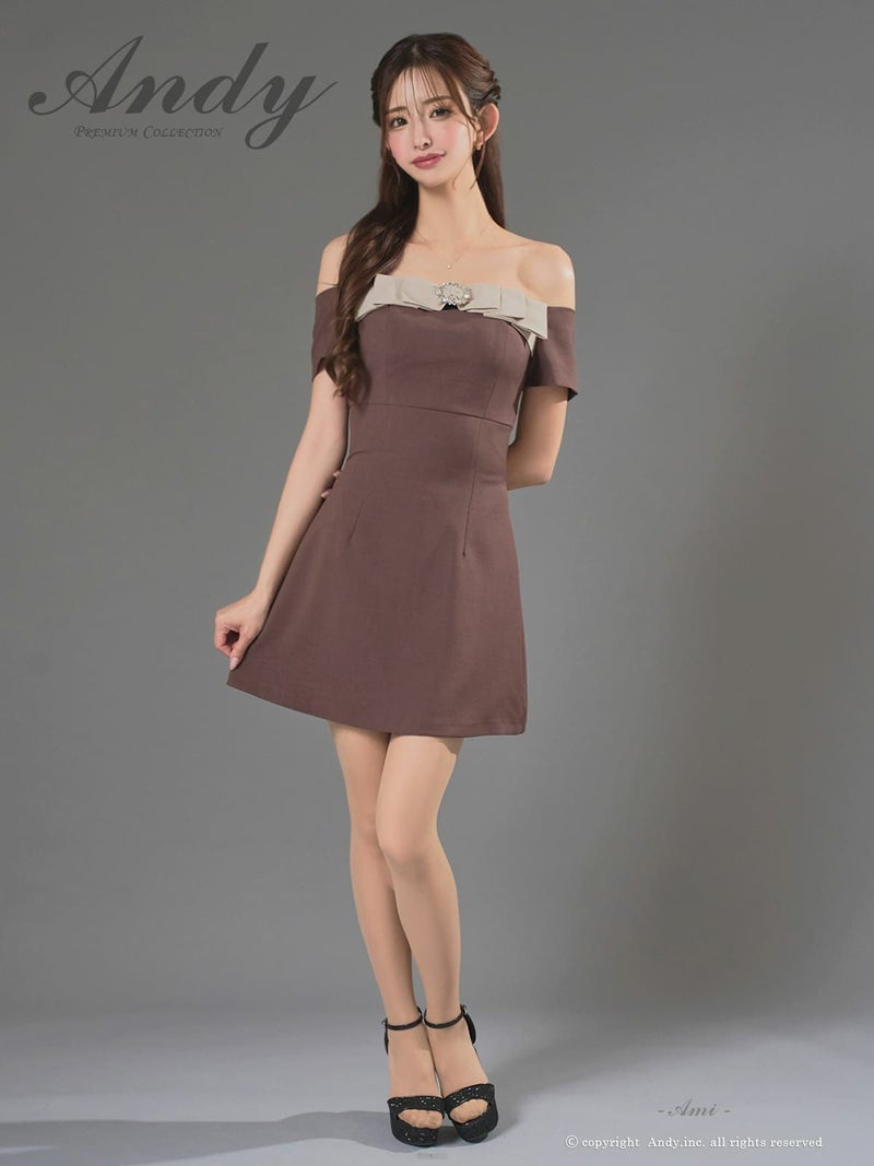 5. [Andy/アンディ] 高級 タイト ミニドレス オフショルダー ビジュー リボン 大人 半袖