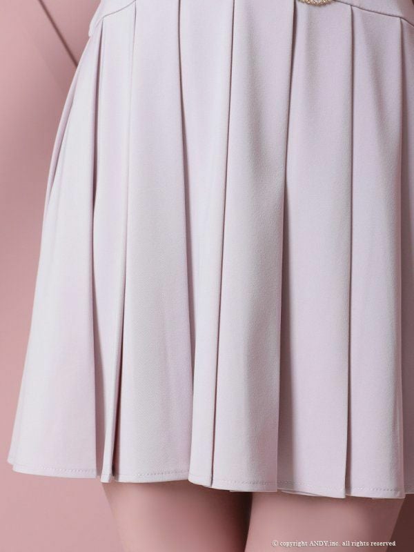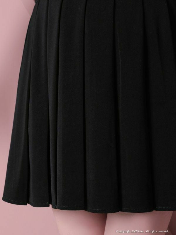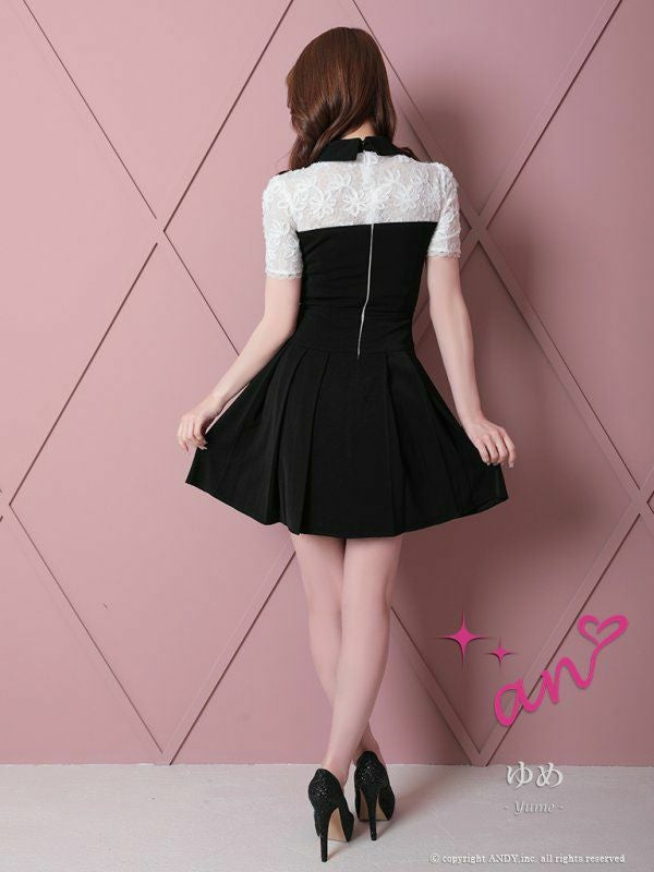 an アン 高級襟付きフラワーレースバストカットくびれプリーツ半袖フレアミニドレス