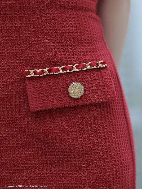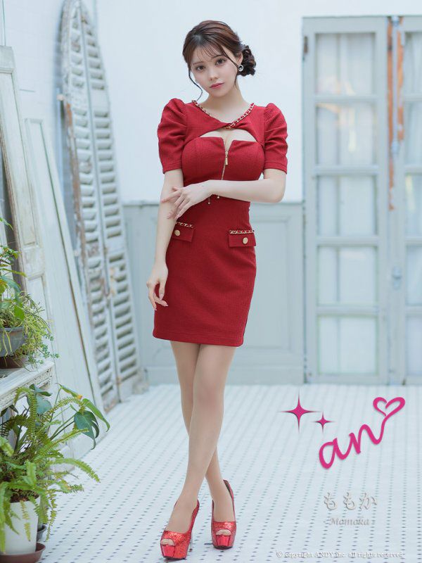 お好みの谷間見せにメイク☆ [an/アン] 高級 半袖 ギャザー バストカット ジップ ポケットチェーン 谷間魅せ タイトミニドレス