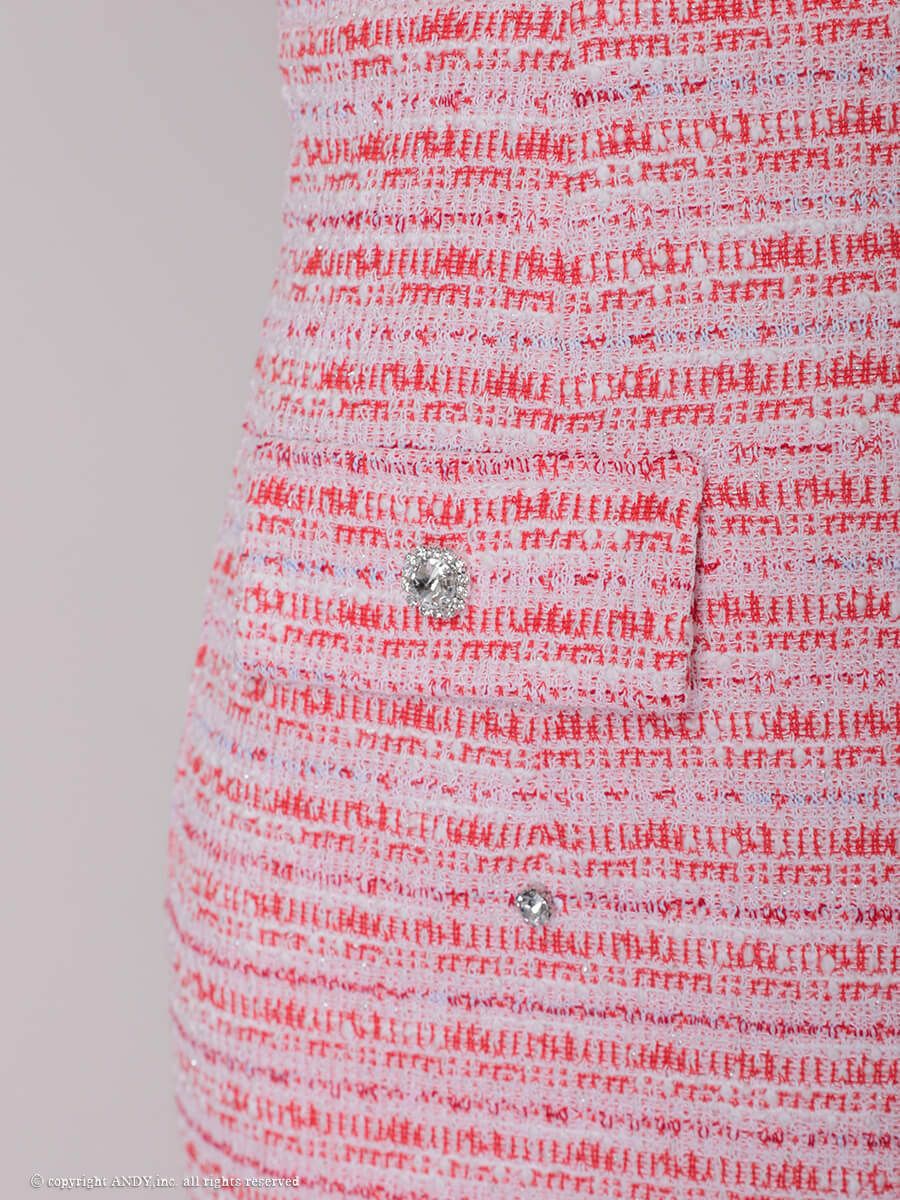 キャバドレス Andy アンディ 高級 半袖 パール ジップデザイン バストカット ビジュー ツイード ポケット タイトミニドレス