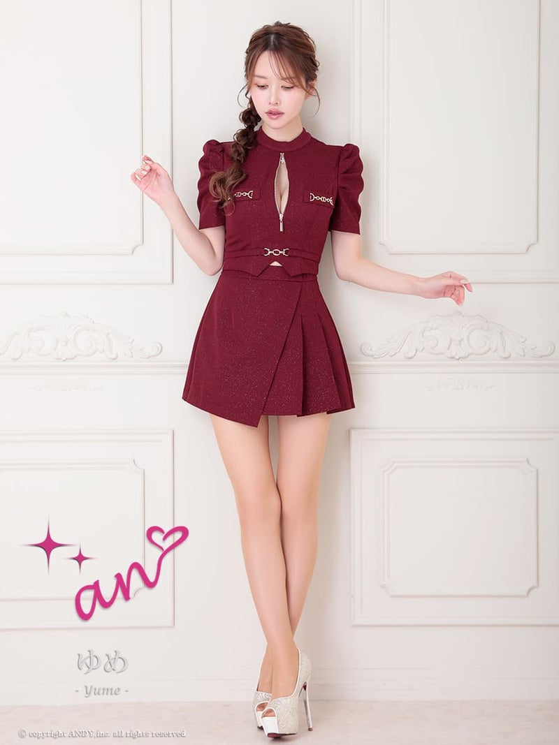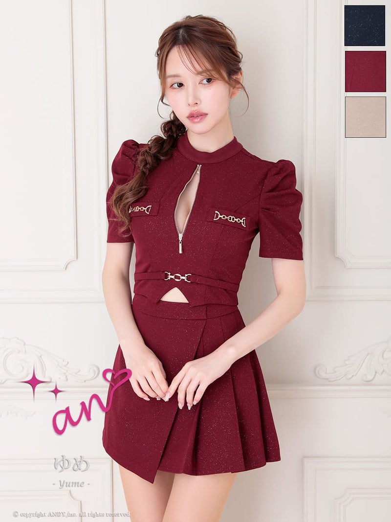 キャバドレス an アン 高級 セットアップ ジップ 半袖 ウエストベルト フレアミニドレス