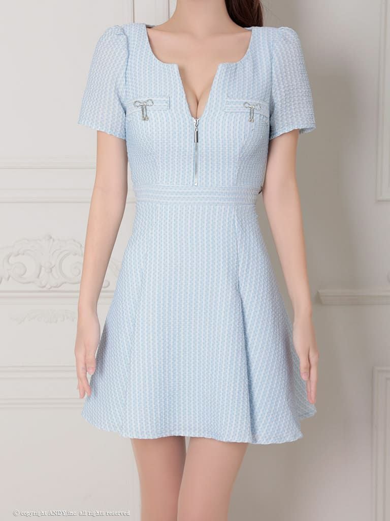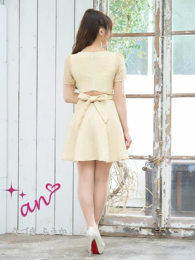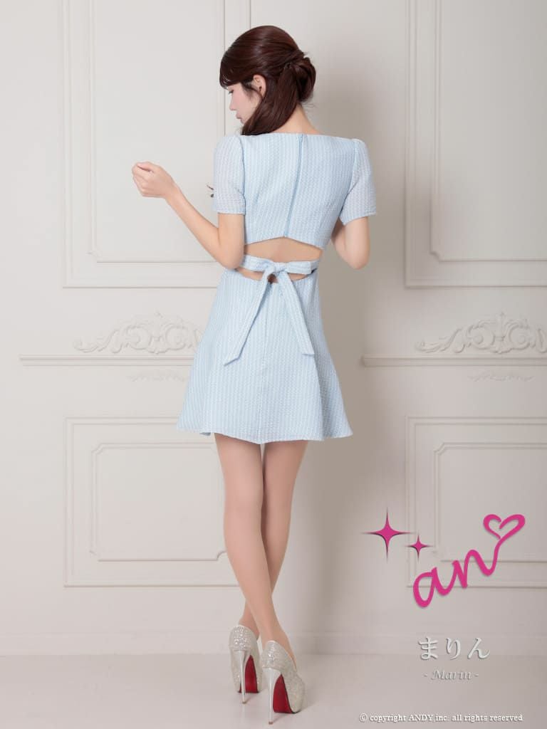 キャバドレス an  アン 半袖 フレアミニドレス ジップ リボン ストライプ柄