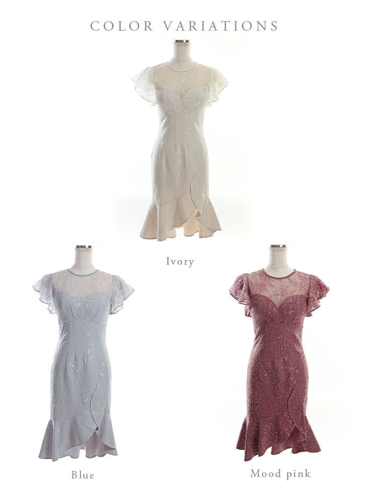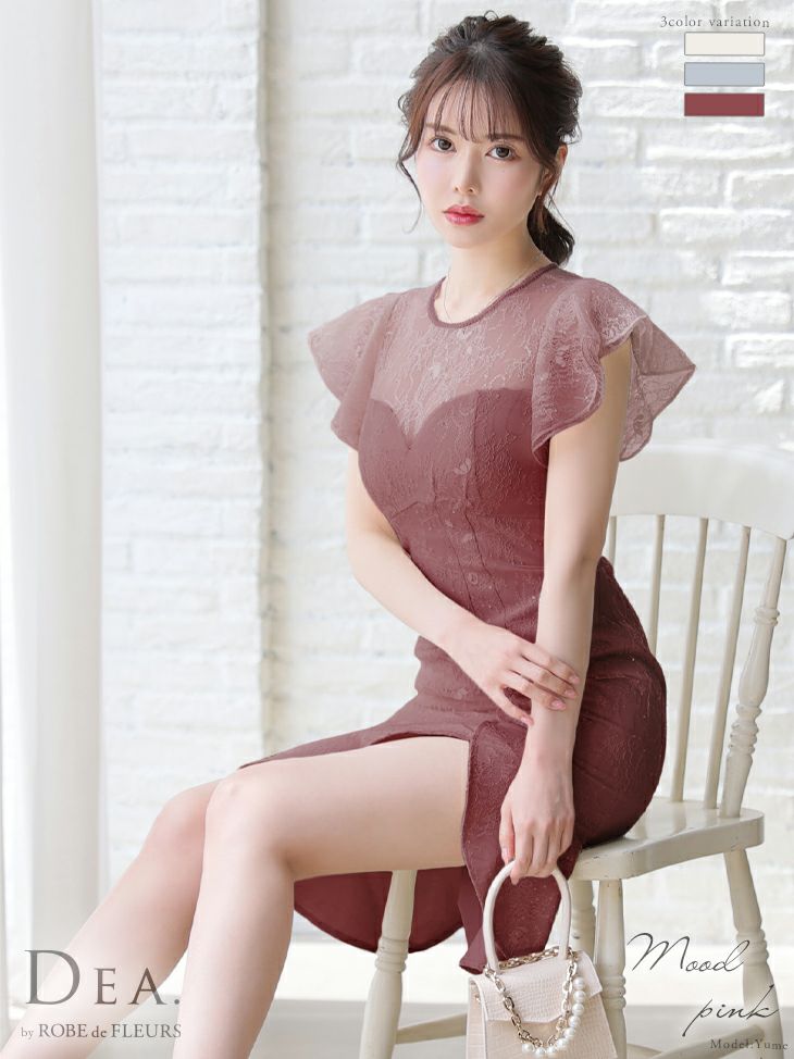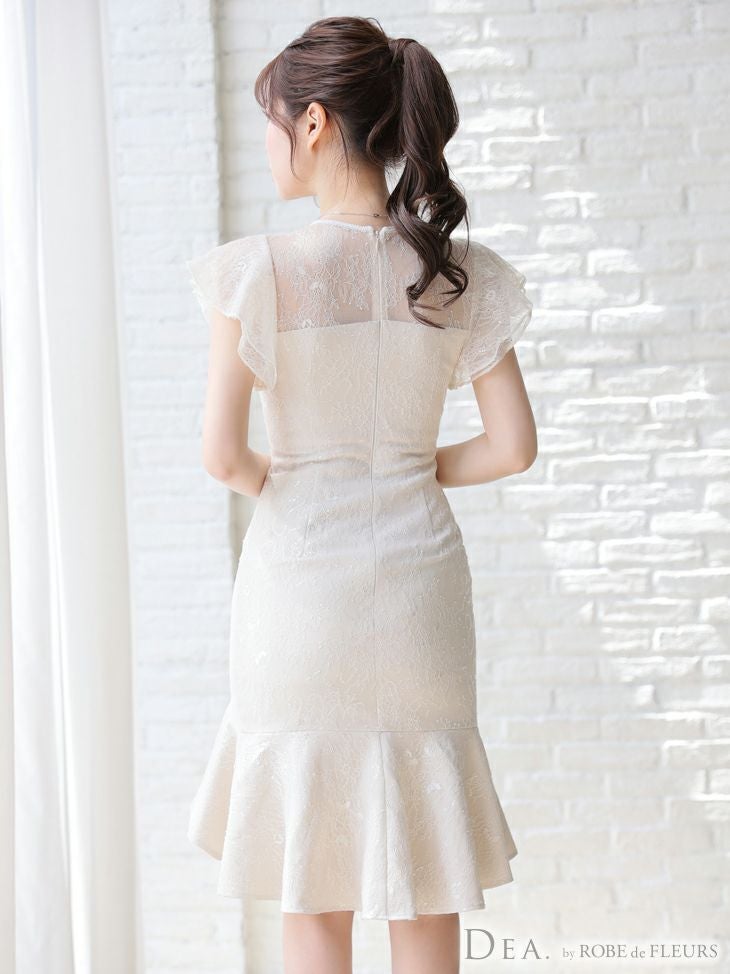 キャバドレス ミニドレス [SALE] DEA.byROBEdeFLEURS ディアバイローブドフルール 高級フリル袖マーメードスカートスパンコール付きレースノースリーブ膝丈ドレス