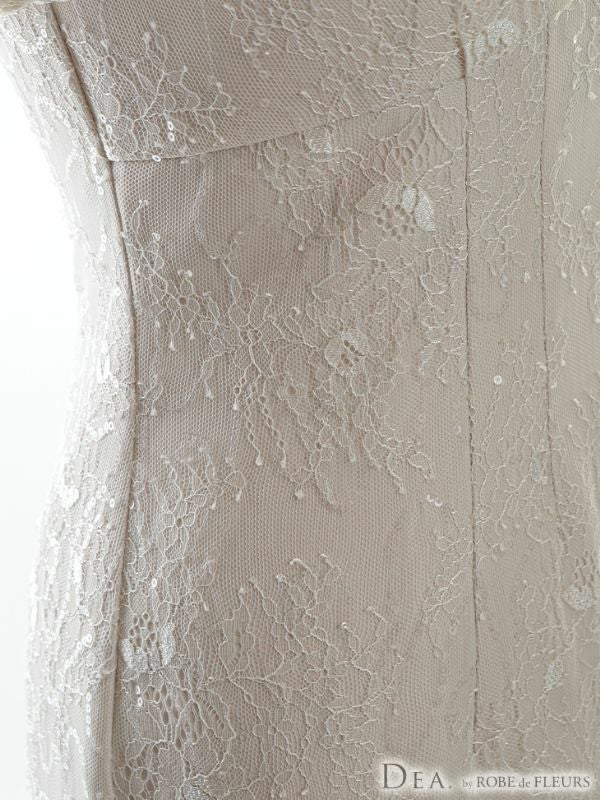 3. [DEA.byROBEdeFLEURS/ディアバイローブドフルール] 高級フリル半袖マーメードスカートスパンコール付きレース膝丈ドレス