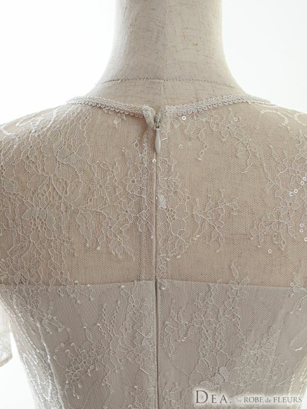 5. [DEA.byROBEdeFLEURS/ディアバイローブドフルール] 高級フリル半袖マーメードスカートスパンコール付きレース膝丈ドレス