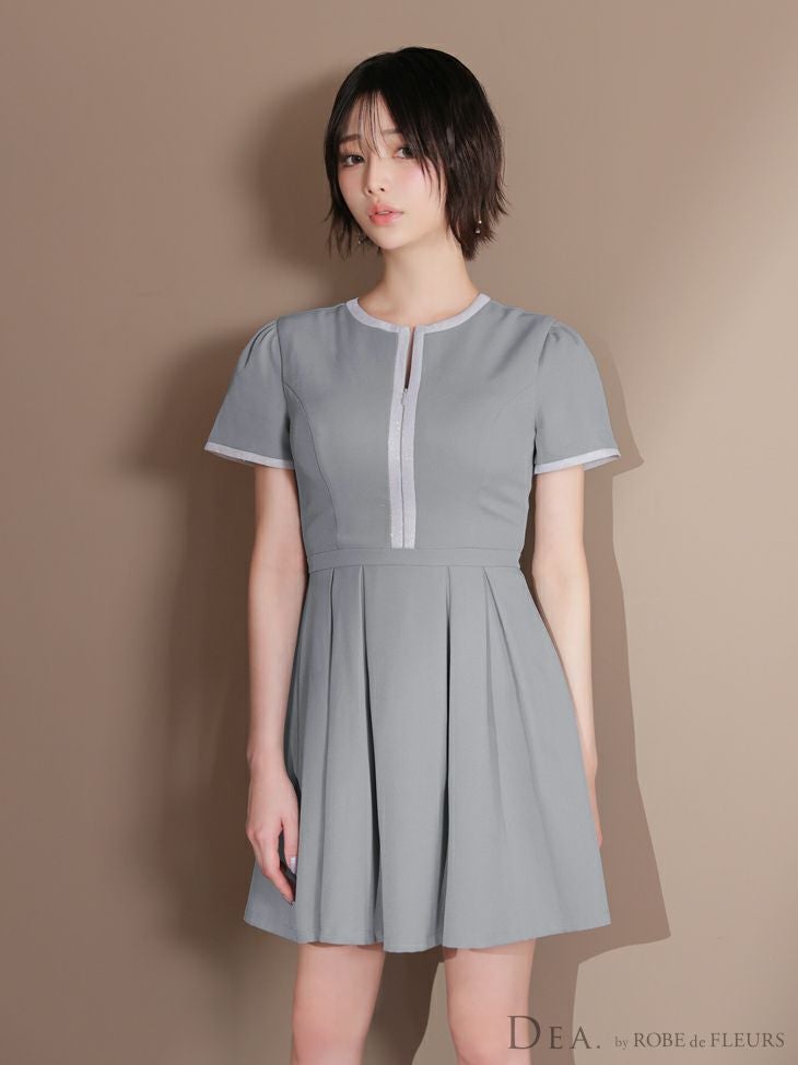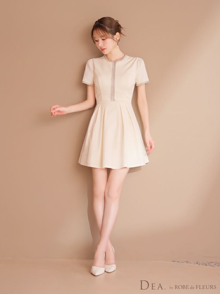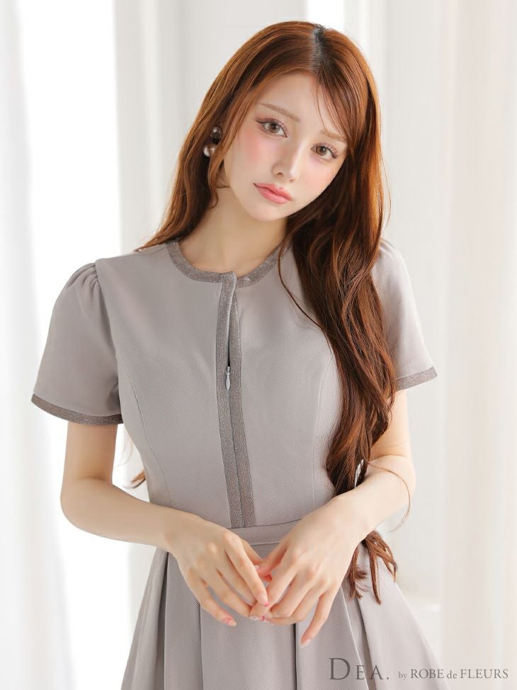 ふんわり広がるスカートがキュート♡ [DEA.byROBEdeFLEURS/ディアバイローブドフルール] 高級 半袖 バイカラー ジップ ラメツイル シンプル フレアミニドレス