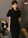 大人シックなデザインとジップスリットが大人セクシー☆ [Veautt/ヴュート] 高級 ツイード ケープデザイン 背中魅せ 半袖 ファスナースリット タイト 膝丈ドレス