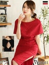 キャバドレス 膝丈ドレス [Veautt/ヴュート] 高級ツイードケープデザイン背中あき半袖ジップスリットタイト膝丈ドレス