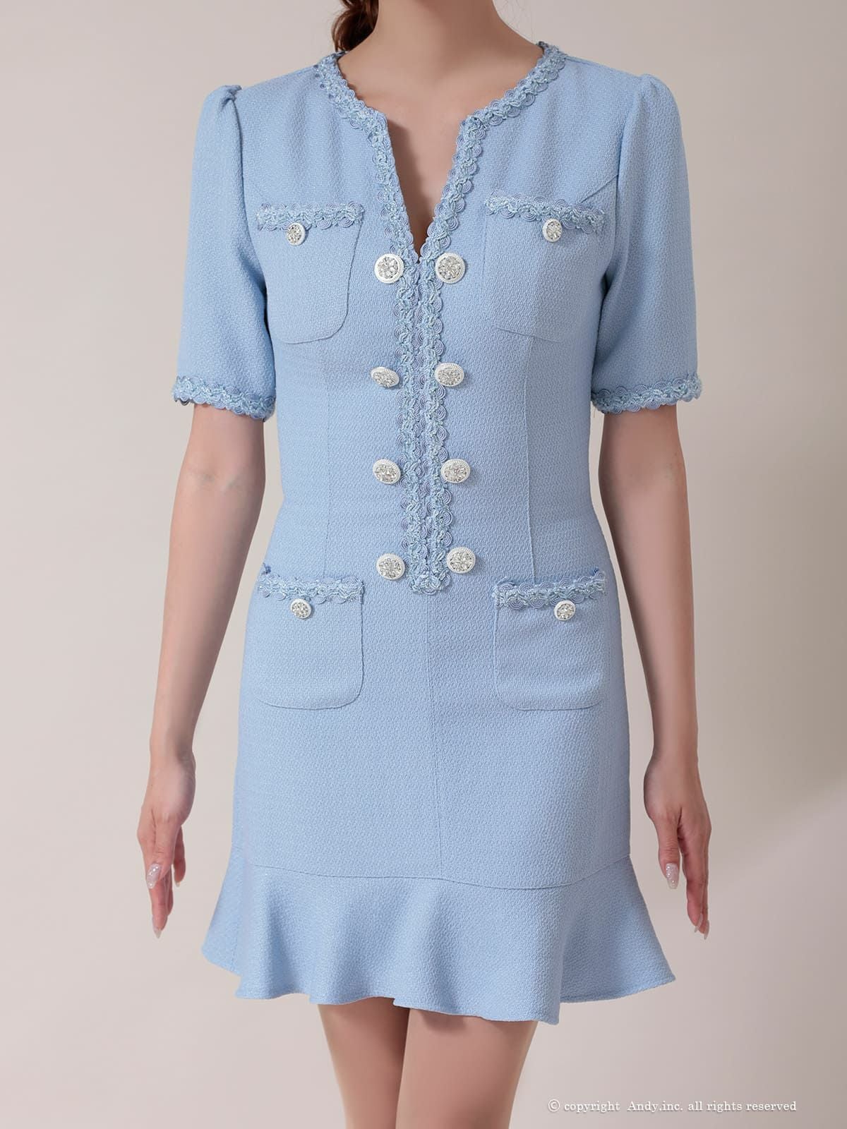 他の画像を見る トレンド感のあるデザインが可愛い☆ [an/アン] 高級半袖 ツイード ジップ チェーンボタン パイピング 裾フリル タイトミニドレス ¥ 26,400 税込 在庫切れ お気に入りに追加
