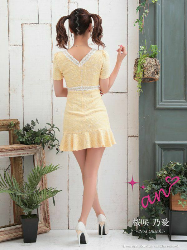 他の画像を見る キュートに素肌を魅せる☆ [an/アン] 高級 ツイード 半袖 レース バックリボン バストカット フロントジップ 谷間魅せ タイトミニドレス ¥ 26,400 税込 在庫切れ お気に入りに追加