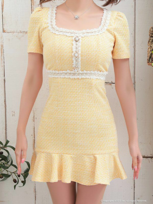 他の画像を見る ボタンの装飾がオシャレ度UP☆ [Andy/アンディ] 高級半袖 ウエストカット スクエアネック フロントジップ ウエストリボン タイトミニドレス ¥ 28,600 税込 在庫切れ お気に入りに追加