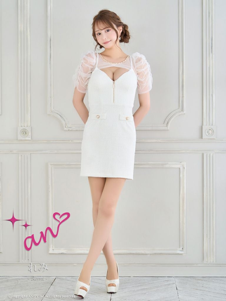 他の画像を見る 程良い肌魅せで大人の魅力を引き出す☆ [an/アン] 高級 ジップ シアー 半袖 バストカット ゴールドチャーム 谷間魅せ タイトミニドレス ¥ 26,400 税込 在庫切れ お気に入りに追加