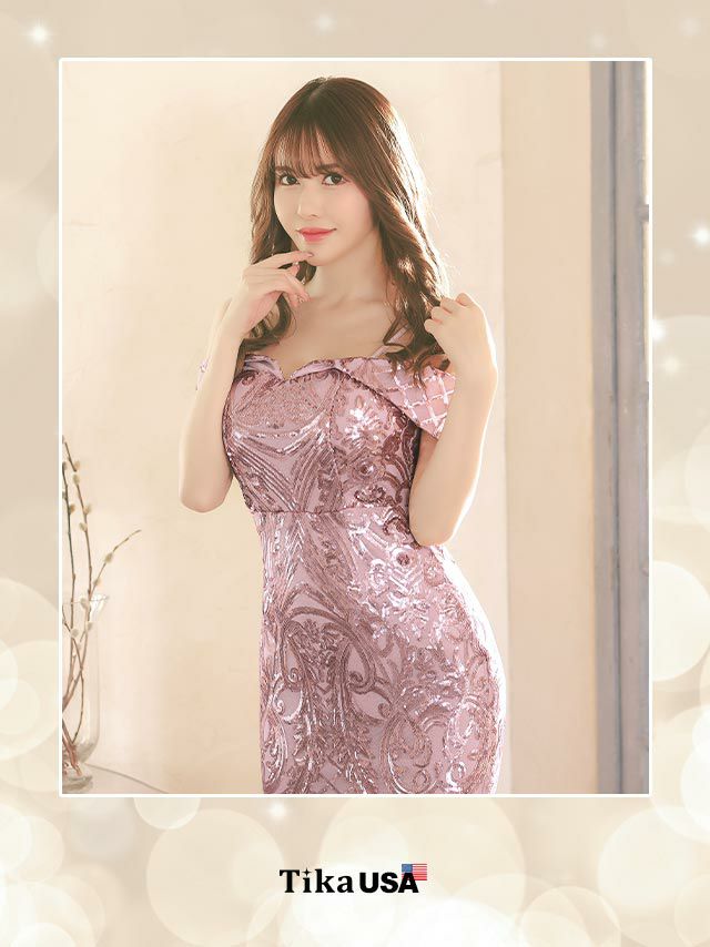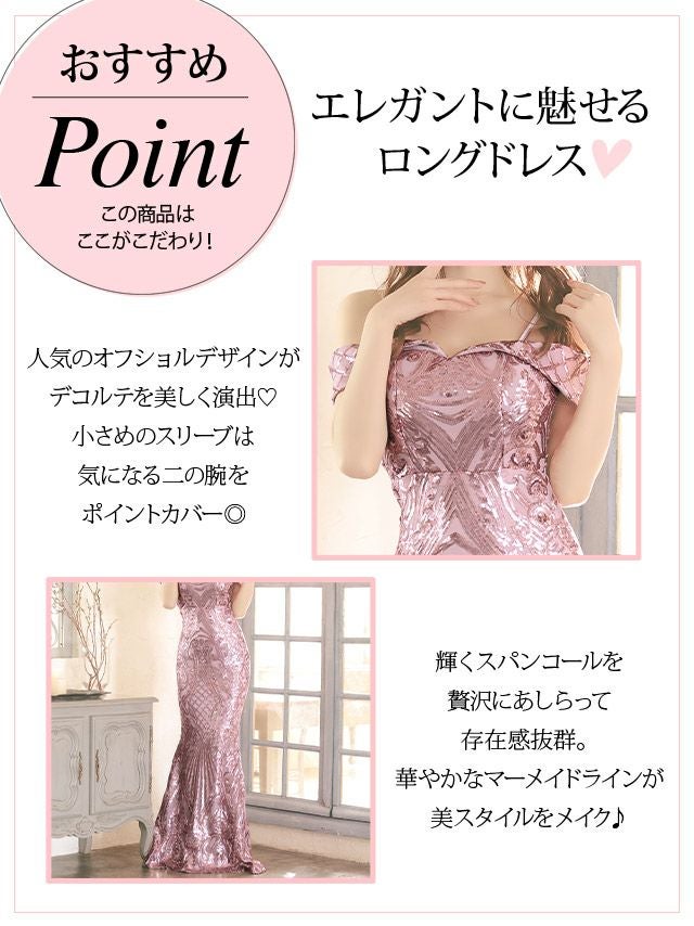 LA直輸入 肩あきスパンコールマーメイドロングバースデードレス (Sサイズ~Lサイズ) (ゆめ キャバドレス着用)