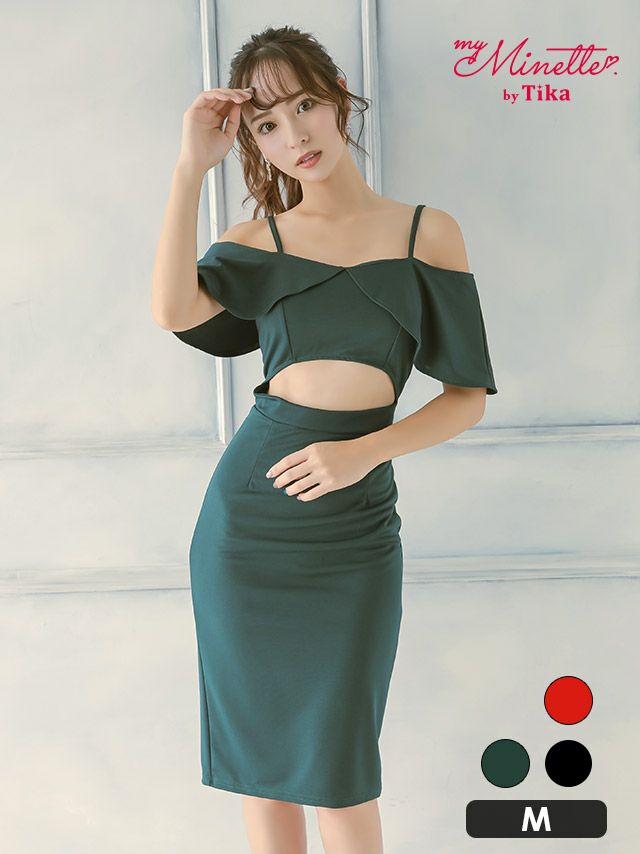 肩あきフリル袖ウエストカットアウト膝丈タイトプチプラドレスワンピースのカラーバリエーション