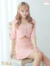 4. ツイード セットアップ 袖あり 五分袖 ショートトップス プリーツ ダブルボタン フレアミニドレス (Sサイズ~XLサイズ) (聖菜/キャバドレス着用)