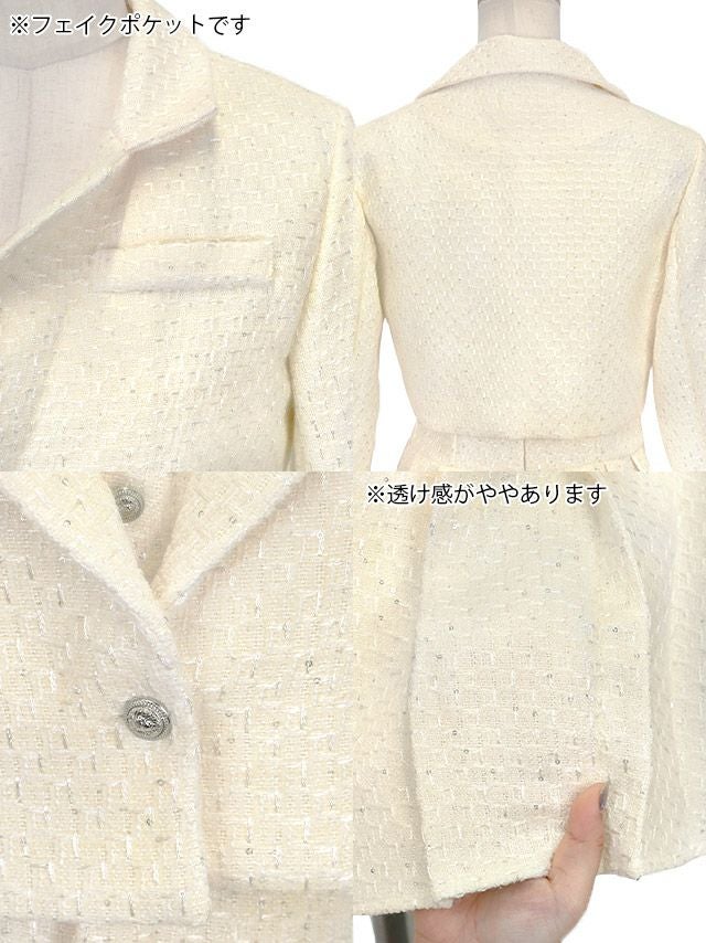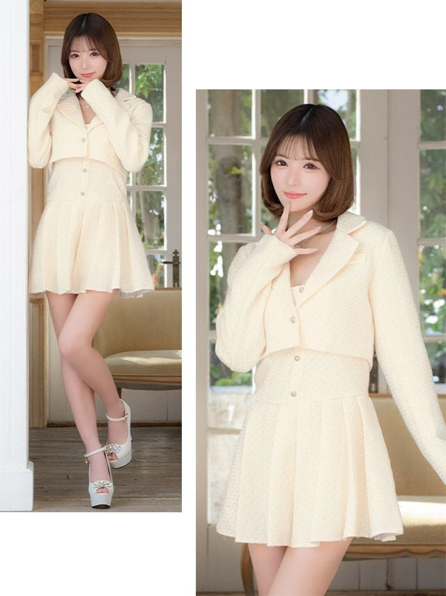 4. ショート丈テーラードジャケット×ベアプリーツフレアミニワンピースツイードセットアップスーツ (Sサイズ/Mサイズ) (聖菜/キャバスーツ着用)