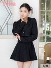 スタイルアップも叶える華やかスーツ♡ ショート丈テーラードジャケット×ベアプリーツフレアミニワンピースツイードセットアップスーツ (Sサイズ/Mサイズ) (聖菜/キャバスーツ着用)