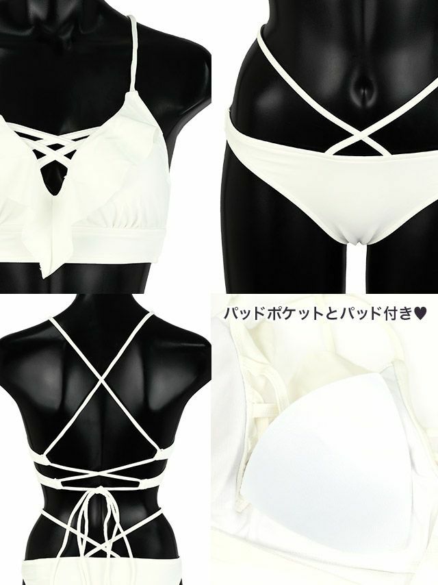 4. 水着 胸元クロスワンカラーフリルセクシービキニ