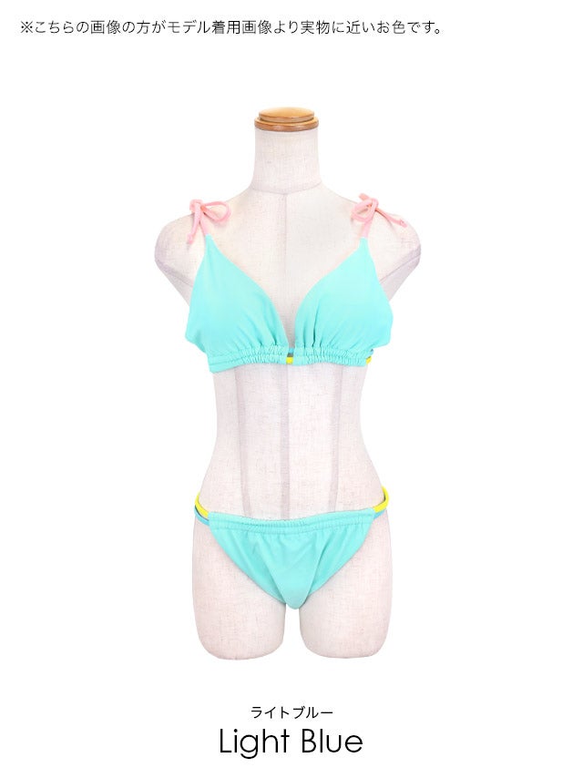 三角ビキニ セクシー ハイレグ マルチカラー ショルダーリボン 紐ビキニ ギャル ヘルシー マゼンタピンクの商品特徴1