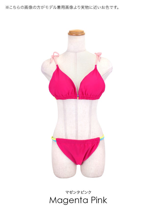 3. [水着] 三角ビキニ セクシー ハイレグ マルチカラー ショルダーリボン 紐ビキニ ギャル ヘルシー マゼンタピンク (聖菜着用) [tk-sw1286a]