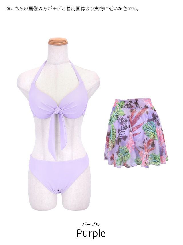 ホルターネックリボン体型カバーニュアンスリーフ柄スカートセクシービキニの色展開