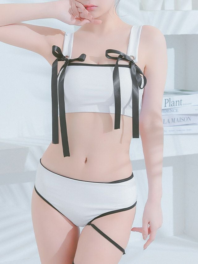 水着 クロスストラップ サテンリボンパイピング ビスチェ ギャル ビキニの色展開